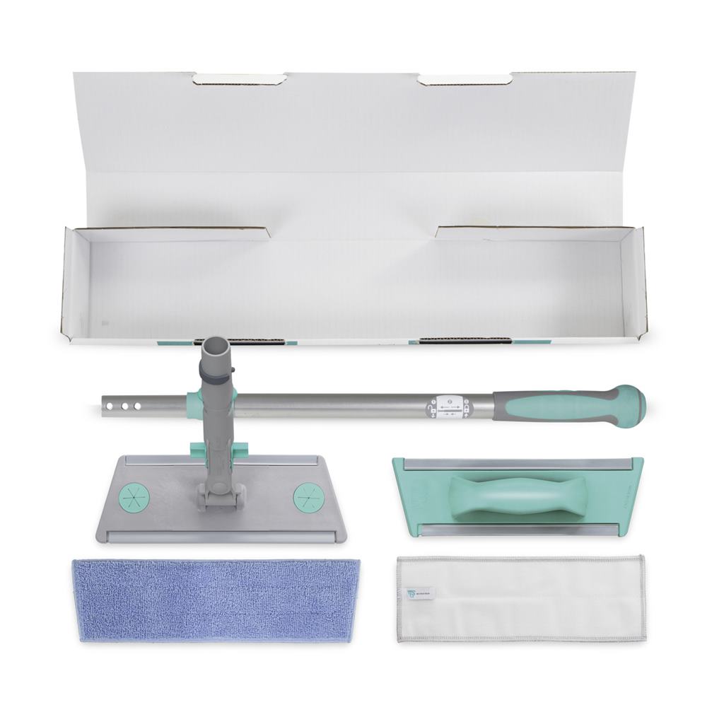 Rám so systémom pások a ultra-mikrovláknovou handričkou na čistenie lesklých povrchov. Ideálne na čistenie lesklých povrchov v interiéroch, ako sú vitríny v chladiacich pultoch a predajniach potravín, sklenené dvere.